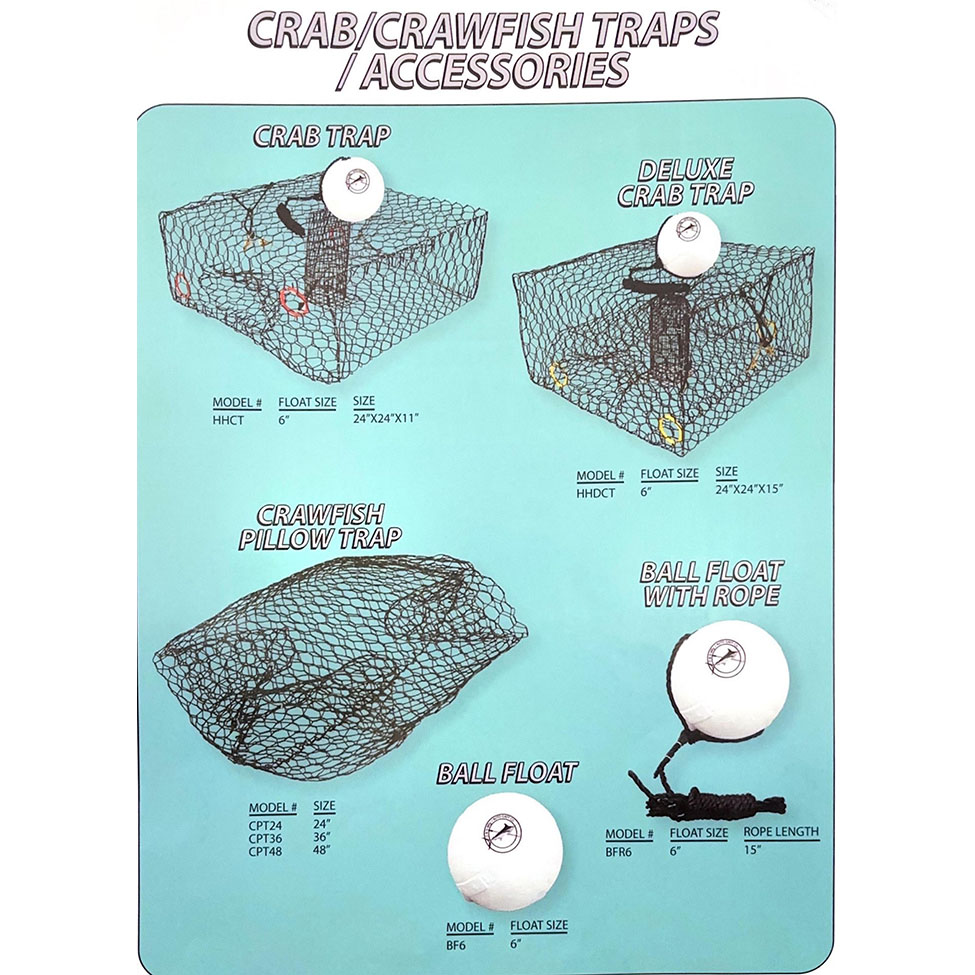 Catch blue crabs with the Crab Trap, which is made of steel wire that is coated with vinyl PVC for use in saltwater and features reinforcement bars to keep its square shape and biodegradable jute twine for hooking. This trap is equipped with a 6" rigged ball float and 15' of polyester rope.
